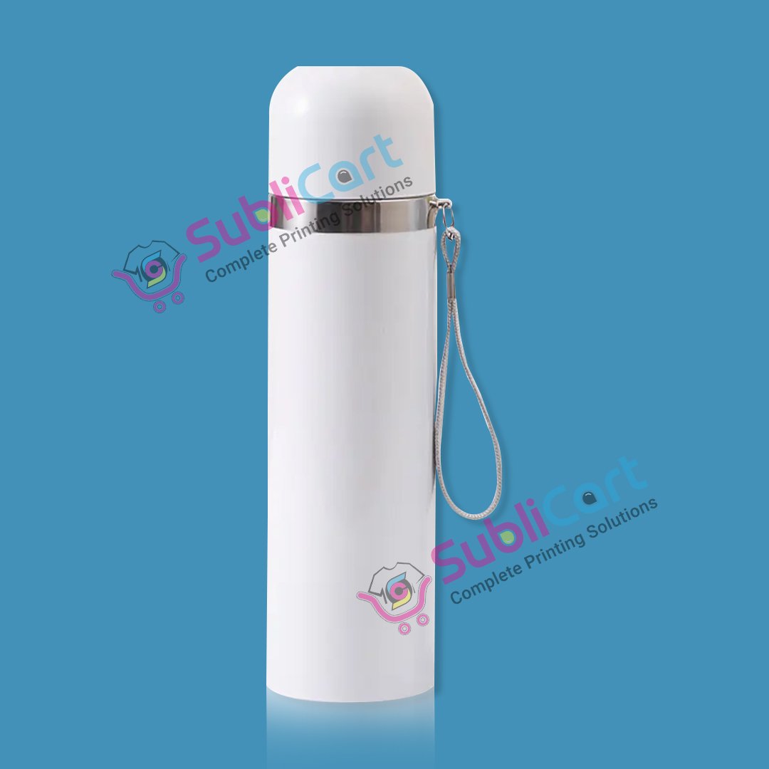 A sublimation thermos bottle is a specially coated stainless steel bottle that can keep drinks hot or cold for many hours. The outside of the bottle has a polymer sublimation coating. This coating helps your printed design permanently attach to the bottle during heat transfer.