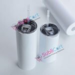 A sublimation tumbler bottle is a stainless-steel bottle that comes with a special coating. This coating helps you print colorful designs through heat transfer. The bottle usually has: